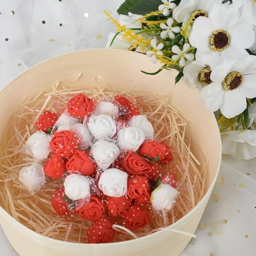 Mini Artificial Rose Heads 288pcs PE Tiny Roses for DIY Crafts, Wedding Brooch, Gift Box (Red+White)