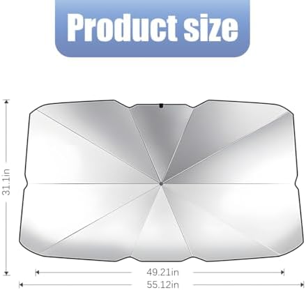 Specifications: Material: titanium silver gel, bumper cloth Color: black/silver Size: small: 25.6 x 46.4 inches large: 31.1 x 55.1 inches Weight: 400g/14.11oz Quantity: 1 Why you choose the product? -360° rotating and bending umbrella pole design, the umbrella pole can be bent to avoid the center control screen. -Ten-wing extension and enlarged butterfly skirt design, which can achieve full coverage without dead angle. -Ten bone carbon steel umbrella frame, support stable and more flexible. -Frosted texture handle effectively prevents slipping and improves the safety of use.