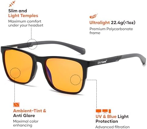 PC Gaming & Computer Glasses | 100% UV400 Protection (99.8% Lab Verified) | Ultra-Light Swiss-Designed Polycarbonate Frame