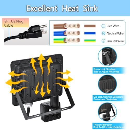 - 【Widely Use, Easy to Install】This Slim floodlight is suitable for any place that needs to be illuminated, including stadiums, garages, warehouses, playgrounds, courtyards, chicken coops and so on. 1.5 meters long cable which make this unit plug and light, easy to dismantle and install.