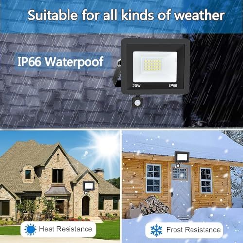- 【IP66 Waterproof】 The LED outdoor security light is made of high-quality die cast aluminum + PC material With IP66 waterproof, ensures that it can work well in harsh environments such as rain, snow, heat or cold.