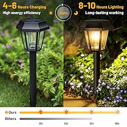IP65 Waterproof - You don't need to worry about the bad weather outdoors, this solar outdoor light adopts IP65 waterproof technology, which integrates waterproof, heat-resistant, and snow-proof, it is born for worry-free outdoor lighting. Easy Installation - No cumbersome wires and no complicated installation, you just need to screw the battery box into the lamp head to turn on the lamp, push the pile into the soil, and then start enjoying the nice light. Solar Energy - Environmentally Friendly and Efficient