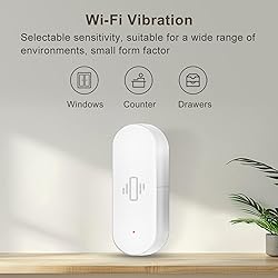 App Alerts: Built-in vibration sensor can detect slight vibration of doors and windows, and you will receive an alarm notification via Tuya/Smart life app. Support recording the historical data of sensor operation, you can view the sensor's past work records on the mobile app. It can better ensure safety, remind the owner of danger and take timely measures. WIFI Remote Control & Adjustable Sensitivity: Wireless door sensor works with 2.4 GHz WiFi (Note: Doesn't support 5G WiFi). No hub required. Tuya/Smart Life App control. Compatible with Google Play, Android and Ios System. Adjustable sensitivity from light touch to push or knock allows you to set according to your needs. Home Automation: The smart vibration sensor can be made to control and trigger other Tuya Smart connected devices when vibration is detected. For example, you can set up a routine in smart life app that triggers your Tuya siren alarm when vibrations are detected. EASY INSTALLATION: Tool-free installation. Just use 3M glue to stick the alarm on any door, window or glass. Perfect for any door and window in your home, garage, office, RV, dorm room. Low Power Consumption and Low Battery Warning: Smart door alarm requires AAA*2pcs batteries (included), AAA batteries give these alarms great battery life, no need to replace the battery frequently. When the battery is running low, LED will flash and the APP will remind you to replace the battery, will not miss the safety protection at home.