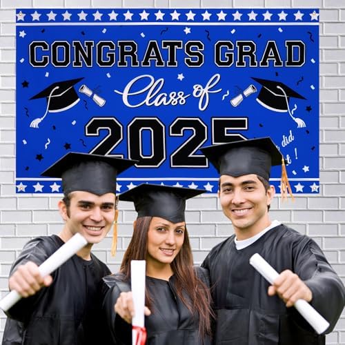 Graduation Decorations 2025 Banner - Class of 2025 Graduation Photo Backdrop, 65” x 39.4” Congrats Grad Banners, Black and Blue Graduate Decor for High School, College Grad Party Supplies