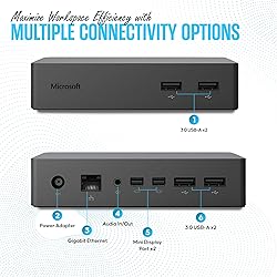 Wide Compatibility: Compatible with Surface Go, Surface Laptop, Surface Laptop 2, Surface Pro, Surface Pro 3, Surface Pro 4, Surface Pro 6, Surface Book, and Surface Book 2. Port Selection: Features 2 Mini DisplayPorts, 1 Gigabit Ethernet port, 4 USB 3.0 ports, and 1 audio out port. Magnetic Surface Connect Cable: Use the magnetic surface connect cable to transform your Surface into a desktop PC. Includes an external energy supply for convenience. Fast Data Transfer: Supports high-speed data transferring for efficient connectivity and performance.