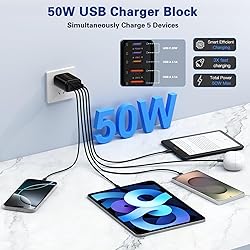 - USB C Wall Charger 2Pack, 50W USB C Fast Charger Block, 5-Port PD Power Adapter + QC Wall Plug Multiport Type C Charging Block Cube Compatible with iPhone 16 15 14 13 12 11 Pro Max XR XS 8 7, Samsung
