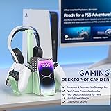 - KDD Dual Controller Holder with Headphone Stand - Multi-Functional Desk Storage Box with Phone Holder - Universal Controller Stand with Desktop Organizer for Remote Control Pen Accessories(Green)
