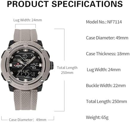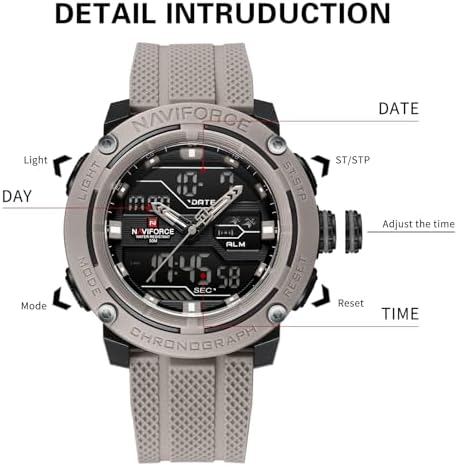 NAVIFORCE 5ATM Waterproof Sport Watches for Men Silicone Band Quartz Analog Digital Alarm Clock Chronograph Luminous Wristwatch