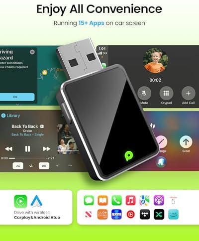 - 【Aesthetic Design】 Featuring an aluminum alloy U-disk design, the product is small, sleek, and feels premium. It stays securely plugged into the USB port even on complex road conditions. Compared to traditional wired wireless CarPlay adapters, it is more steady and less likely to fall out, keeping your car interior neat and tidy.