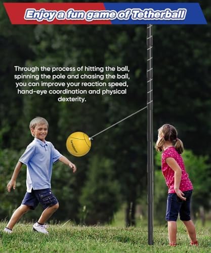 - Leisure & Coordination: All it takes is a tetherball game to turn your backyard lawn into a paradise of joy. Through the process of hitting the ball, spinning the pole and chasing the ball, you can improve your reaction speed, hand-eye coordination and physical dexterity. Being an ideal outdoor game, this tetherball set lets everyone have fun with families or friends in outdoors. (Recommended age 3 plus)