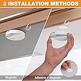 Rechargeable Motion Sensor Night Light: This LED night light features a built-in rechargeable battery that fully charges in approximately 2 hours and delivers up to 6 hours of continuous illumination per charge. Enjoy efficient, cable-free lighting with reliable performance for everyday use 3 Lighting Modes with Smart Motion Activation: Switch easily between ON, AUTO, and OFF modes. In AUTO mode, the motion sensor night light automatically turns on when motion is detected within 16.4 ft, with a 120° sensing angle, and the ambient light level is below 50 lux. It will shut off 20–30 seconds after no movement is detected for battery life conservation Touch Control with Custom Lighting: Tap the touch-sensitive area to switch between three color temperatures—warm light (2900K), warm & white light (4000K), and white light(6000K)—each providing up to 30 lumens of brightness and illuminating up to 32.8 ft. Long-press to adjust brightness steplessly in both ON and AUTO modes, giving you full control of your lighting preference Memory Function for Effortless Use: The rechargeable LED night light remembers your last brightness and color temperature settings. After being on for more than 5 seconds, a single tap turns it off. When turned on again, it automatically restores your previous lighting preferences—no need to readjust every time 2 Flexible Mounting Options: Mount magnetically to metal surfaces for quick removal, or stick anywhere using the included adhesive sheet. This rechargeable night light is perfect for bedrooms, hallways, stairways, closets, under cabinets, and more
