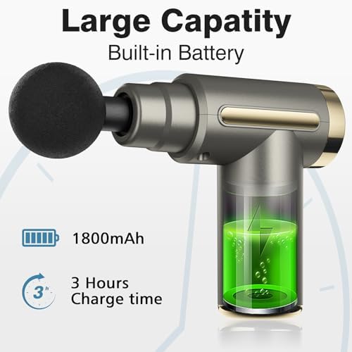 - The Massage Gun Mini incorporates a cleverly concealed heat dissipation design that extends its lifespan by efficiently blocking sweat from penetrating the casing. This allows you to enjoy a worry-free massage experience.