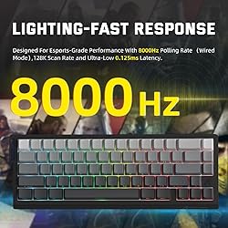 8000Hz Polling Rate & Adjustable Actuation :With a lightning-fast 8000Hz polling rate and ultra-low 0.125ms latency, the ATTACK SHARK X68PRO HE keyboard ensures every keystroke registers instantly. Featuring self-developed Hall Effect magnetic switches, this keyboard allows precise actuation adjustments from 0.1mm to 3.4mm with an impressive 0.01mm sensitivity, giving gamers unmatched control and responsiveness. Compact 60% Layout with Premium Aluminum Build:Designed for maximum desk space and mobility, this 60% gaming keyboard enhances comfort and precision for intense gameplay. The X68PRO HE boasts an aircraft-grade anodized aluminum frame, providing exceptional durability and stability while maintaining a sleek, professional look. Rapid Trigger & Dual-Action Key Function:By eliminating debounce delay, Rapid Trigger technology ensures keys reset instantly without full release, making rapid movements in FPS games smoother and more precise. The X68PRO HE also supports Dual-Action Key Function, allowing a single key to perform two different actions based on pressure, simplifying complex combos and giving players a tactical edge. Stunning RGB Backlighting & Optimized Acoustics:Equipped with 16.8 million customizable RGB lighting modes, this keyboard delivers a vibrant, immersive gaming experience. The X68PRO HE features dual-layer PORON dampening foam, significantly reducing keystroke noise while enhancing the HIFI acoustics for a satisfying typing feel. Tri-Mode Connectivity & Web Driver:Supporting 2.4GHz wireless, Bluetooth 5.2, and USB-C wired connection, this keyboard seamlessly adapts to different devices. The X68PRO HE is fully programmable via the QMK.TOP web driver, enabling users to remap keys, set macros, customize actuation points, and fine-tune RGB effects—all without software installation. Ergonomic Design & Premium Accessories:A detachable soft-edged wrist rest ensures long-lasting comfort during marathon gaming sessions. The X68PRO HE also includes a customizable detachable banner for added personalization, and a 1.5m Type-C cable with magnetic shielding, ensuring stable and interference-free connectivity.