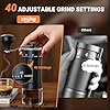 - 40 EXTERNAL GRIND SETTINGS FOR PRECISION – Our manual coffee grinder features 40 external adjustment ring for precise control over coarseness. Whether you're brewing espresso, pour-over, or French press, dial in your ideal grind size quickly and cleanly.