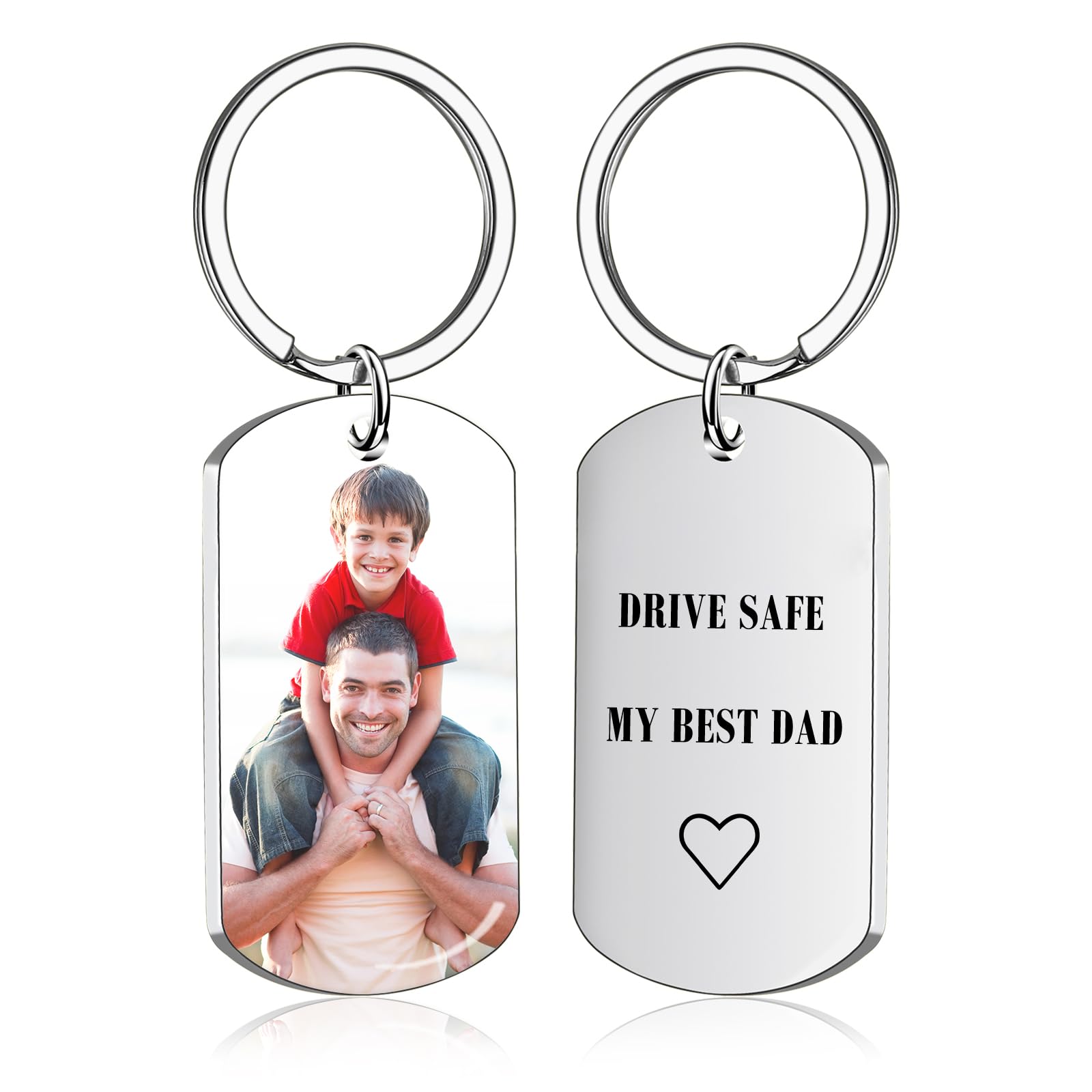 Custom Keychain with Picture - Personalized Photo Text Keychains Customize Father's Day Gifts for Him Men Boyfriend