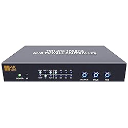 - This UHD video wall controller is a professional video wall processor to distribute video signal to multiple TV monitors for splicing display. It supports a HDMI and a Type-C input, max input resolution reach 3840*2160@60Hz. With 4 HDMI outputs, each output resolution support 3840*216030Hz or 1920*1080@60Hz, it can connect with max 4 TVs to realize 2x2, 1x2, 1x3, 1x4, 2x1, 3x1, 4x1 splicing display. Features 4K60 Input Support max 3840*2160@60Hz HDMI and USB Type-C input 4K HDMI output for 4K TV With 4x HDMI outputs, each output resolution support 3840x2160 for 4K TVs Multiple Splicing Mode Supports 2x2, 1x1, 1x2, 1x3, 1x4, 2x1, 3x1, 4x1 splice modes. Rotate 180 degree Each output can rotate image 180 degrees which can be used to rotate the TV 180 degrees for installation. Plug and play, easy to use It is plug and play, and very easy to switch the display. Specifications HDMI Input HDMI 2.0, built-in audio, 640*480 to 3840*2160@60Hz resolution USB-C Input Type-C, built-in audio, 640*480 to 3840*2160@60Hz resolution HDMI Outputs 4ch HDMI outputs, each channel supports 3840x2160@30Hz or 1920x1080@60Hz resolution video and built-in audio. Audio Output 4ch built-in audio HDMI output ports 1ch 3.5mm audio output port Splice Mode 2x2, 1x2, 2x1, 1x3, 3x1, 1x4, 4x1 Rotating Mode Rotate 180 degrees Control Remote Control, buttons Power Supply DC5V 2A Power Consumption 5W Size 183mm*98mm*40mm Package Size 248mm*180mm*67mm Weight 0.54kg Package Weight 0.8kg