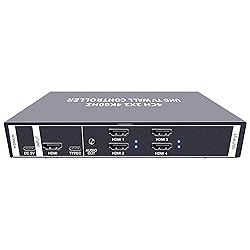 4K UHD Video Wall Display: Support 1x HDMI and 1xUSB-C input, max resolution reach 3840*2160@60H. With 4x HDMI output, each output port resolution support 3840*2160. You can make 4x 4K TVs into 1 wall. Multiple Splice Mode: It supports 2x2, 1x1, 1x2, 2x1, 1x3, 3x1, 1x4, 4x1 splicing mode, you can use it for different TV wall. Rotate 180 Degrees: Each output port can output the image rotated 180 degrees, if you install the TV rotated 180 degrees, you will also can get normal image display. Plug and Play, Easy to Use: It is very simple for connection and installation, and very easy to switch the display by a remote control or 3 buttons. Professional Design, stable work for 24x7.