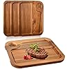 4 pcs Acacia Wood Steak Plates,Carnivore Cutting Board for Eating, Carved Meat Wooden Plate, Food Serving Tray,Cheese Charcuterie Boards with Deep Grooves & Hidden Handles