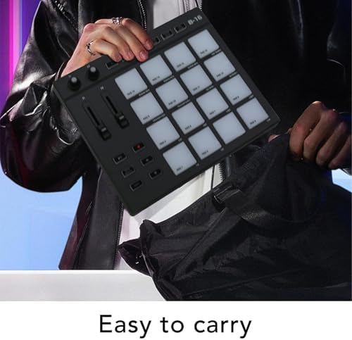 Beat Maker Machine, Drum Machine, MIDI Controller with 16 Drum Pads 2 Assignable Fader Knobs for Beginner Music Production, Black