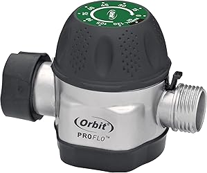 - High-flow design allows 30% more water flow than standard mechanical timers, helping you water your plants with much greater ease and efficiency Only metal mechanical timer on the market - built with heavy-duty metal materials for durability, strength and years of reliable watering Timed watering up to 120 minutes, with manual water override capability, to fit a wide variety of watering needs for your lawn, plants and gardens Oversized dial with comfort grip for easy use and a large, ergonomi...