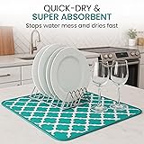 Dish Drying Mat - Microfiber Kitchen Counter Mat, Super Absorbent & Quick Dry Dish Drying Pad for Dishes, Utensils, Pots & Pans - Large Reversible Drying Mat for Kitchen Countertops, Coffee Bar, Green