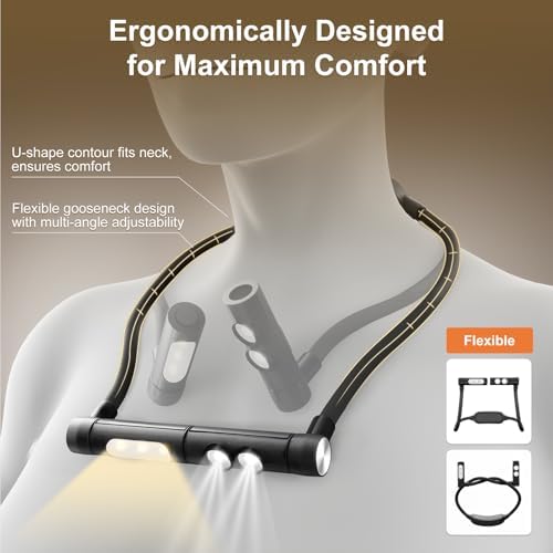 - 【Hands Free & Perfect Gift】Designed for hands-free use, this reading lamp hangs comfortably around your neck, occupying minimal space with its lightweight compact form factor. Its portable design allows effortless storage in backpacks.The book lights is an ideal gift for anyone who enjoy reading, crocheting,repairs, night-time walks, or dog walking.