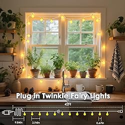 Product Dimensions: Featuring 100 upgraded warm white LED bulbs, total 43ft(33ft string lights and 10ft leading line), the globe string lights plug in emit a soft, warm glow, ideal for everyday decor as well as holiday celebrations. Remote Control & Timer & Memory: These indoor string lights come with a wireless remote, you can easily turn the lights for bedroom on and off, select from 8 light modes, adjust 4 brightness levels, and set a timer to keep the lights on for 6 hours and off for 18 hours. The string lights for bedroom will memorize your last setting with the built-in memory chip. Connectable Design: Our indoor fairy lights with remote could be extended up to a maximum of 5 sets, which means you can expand the decorative range as needed. LED string lights indoor can be used for various purposes, such as decorating classroom, dorm, girl's bedroom, home, wedding, party, patio, kids' room, balcony, window, living room, garden, wedding and Christmas. Safer to Use: The output voltage of the warm twinkle lights is 29V. The low output adapter ensures that it can be used in a safe environment. These led fairy lights, built with premium LED beads and all-copper wire, will not overheat after long-term use, so the elderly and children can safely touch them. Waterproof IP44 Design: These hanging lights indoor have an IP44 waterproof rating and are designed to withstand normal weather conditions, with no need to dismantle the string during rainy days. Please note: The adapter is not waterproof and should be used outdoors with a waterproof receptacle cover.