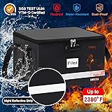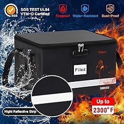 - Protect Your Valuables in Style with the Ultimate Fireproof File Box Safeguard your most cherished documents and essentials with the Upgraded Fireproof File Box—a fortress of security and convenience designed for modern life. Crafted with 3-layer silicone-coated fiberglass (UL94 VTM-0 certified), this box withstands extreme heat up to 2300°F and resists water, ensuring your passports, legal contracts, USB drives, and family heirlooms survive fires, floods, or storms. USPTO-patented and rigorously tested, it’s the trusted choice for peace of mind. Why settle for ordinary storage? This sleek organizer boasts a spacious 15.5” x 12.3” x 10.5” interior, effortlessly accommodating letter/legal folders, photo albums, and more. Stay organized with 3 passport-sized mesh pockets and a zippered compartment inside the lid—perfect for quick access to small treasures. The smooth PVC sliding rails let you glide folders in and out like a pro! Security meets simplicity with the 3-digit combination lock—no keys to lose, just personalized protection. Plus, the glow-in-the-dark reflective strip and transparent label slot ensure you’ll spot your box instantly, even in a midnight emergency. Built for life on the go, it features reinforced handles with soft leather grips for easy lifting, and folds flat when empty to save space. Use it at home, in the office, or stash it in your car—it’s as versatile as it is durable. DSDCDJ stands behind every box with 24/7 customer support—if anything goes wrong, we’ll replace it or refund you, guaranteed. Don’t wait for disaster to strike. Keep your essentials safe and organized without the bulk of a heavy safe! Order now and experience the confidence of knowing your irreplaceable items are shielded from life’s unexpected moments.