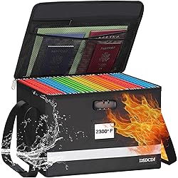 【FIREPROOF & WATER-RESISTANT】The upgraded fireproof file box is made of 3 layered non-itchy silicone coated fiberglass which stands up the temperature up to 2300℉. It has been passed by SGS TEST(UL94 VTM-0 Certified). The fireproof document box is fireproof&Water-resistant, which can effectively protect your important documents in a fire, flood, and wet weather. The product is USPTO Patent Approved 【LARGE CAPACITY】This fireproof file box measures 15.5" x 12.3" x 10.5" and fits both Letter and Legal size documents, as well as your hanging folders, important document, passports, certificates, USB drives, photo albums, and other valuables. The inside of the fireproof document box lid features 3 passport mesh pockets and a large zippered mesh pocket for additional storage. Stay organized and keep your essentials secure with this portable file box 【COMBINATION LOCK PROTECTION】The high-quality double zipper combination lock design increases the security of the important document organizer. In addition, the three-digit combination locking mechanism provides maximum security for your contracts, certificates, passports and other valuables (Includes instruction manual for combination lock). Our fire proof document box is equipped with smooth PVC sliding rails on both sides, you can effortlessly slide file folders 【ANTI-STATIC & REFLECTIVE STRIP DESIGN】The reflective strip design on the front of the portable file box with handle allows you to immediately find your fire proof file box even at night, protecting irreplaceable documents and valuables from fire. The transparent label slot allows for quick identification of the contents stored inside the file box and easy sorting 【PORTABLE & SPACE-SAVING】The side of the file organizer box features stronger handles and soft leather wrapped handles to make it easier and more convenient to move and carry the hanging file organizer. When not in use, simply fold it for easy storage and space-saving convenience. You can put it in your home,office,car and other places 【TRUSTED AFTER SALES SERVICE】DSDCDJ provides reliable Fireproof products all over the world, and we always focus on the customer. If there any problem, please feel free to contact us know, ready to respond within a 12 hour time. We promise to arrange a REPLACEMENT or 100% REFUND immediately