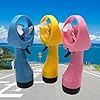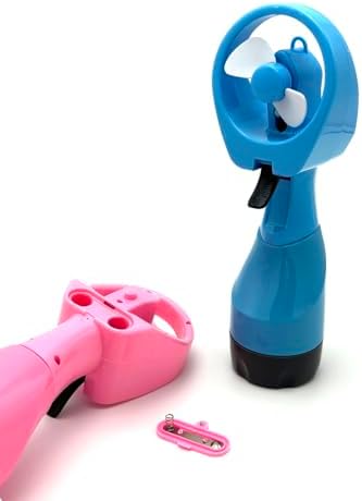 ABS Battery Powered Handheld Water Misting Fan Manual Spray Fans for Beach Travel Outdoors 3 Pack (Blue/Yellow/Pink)