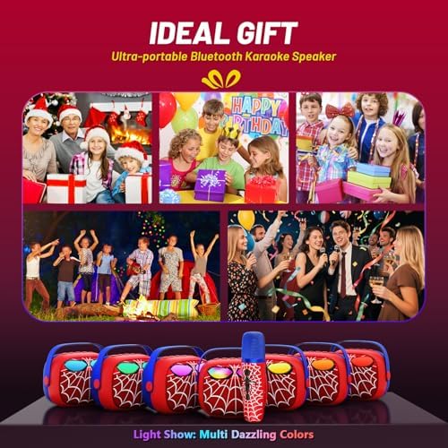 - 【Cool Theme Design, Dynamic Lights】This mini karaoke machine features a cool themed design that kids love, as well as eye-catching LED lights synchronized to the music, turning any room into a vibrant stage. Perfect for birthday celebrations or family karaoke nights, let the kids sing, dance and shine!