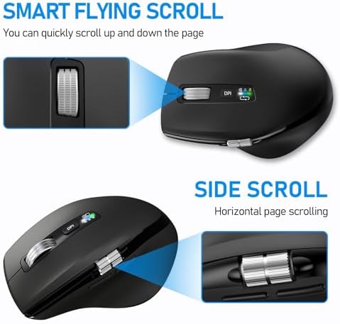 Wireless Bluetooth Side Scroll Mouse with Multi-Device, Ergonomic Computer Mice with Smart Flying Scroll, Quiet Click for Computer, Laptop, iPad, Tablet, MacBook (Black)
