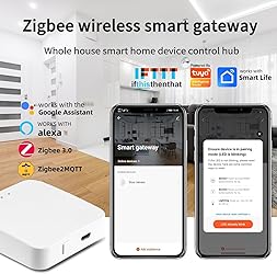 [Note] Support zigbee2MQTT and IFTTT. This gateway only supports the ‘Smart Life’ app and only works with the ‘Smart Life’ app. If you want to control it with other apps, you can try using IFTTT or zigbee2mqtt automation programs to bridge it. The zigbee gateway is powered by USB cable (it will be provided in the package), when configuring the network, please connect your phone to wifi, make sure your phone and smart gateway are in the same wifi network, only 2.4 GHz wifi is supported, 5GHz wifi is not supported. [Easy Setup] No need to connect a network cable, simply power on this smart gateway hub and connect it to the Tuya/Smart Life app. Within minutes, you can easily automate your smart home. [Compatibility] Compatible with all zigbee devices, zigbee hub is a must-have device for all zigbee smart devices, which can access about 50 devices and provide stable connection and automatic control for all zigbee devices, solving the connection troubles. [Intelligent Linkage] Setting up automation scenes through Tuya Smart/Smartlife App allows sub-devices to link up and control other supported devices to form the ideal scenes in your life, making your home smarter and more cozy. [No Fear of Network Disconnection] With the Zigbee wireless gateway configured, even if there is no network, the devices and tasks bound to the Zigbee gateway will still perform the automation of the devices according to the settings in the App. However, in this case, it is not possible to control them remotely. [App Control] Quickly and easily add, reset and group devices and set up schedules through the zigbee wireless gateway, use the Tuya/Smartlife APP to control a variety of zigbee products (including switches, outlets, sensors, door locks, motorized curtains, etc.), and remotely control connected devices with your smartphone anytime, anywhere. [Voice Control] The wireless zigbee smart gateway supports voice control, simply send voice commands to Alexa or Google home to control the device. Simply say “Alexa, turn on the light” or “Hey Google, open the door” to free your hands.