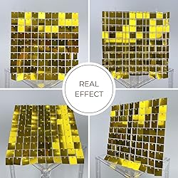 Shimmer Wall Sequin Backdrop, 12pcs Square Shimmer Wall Sequin Backdrop, DIY Party Shiny Decor for Wedding, Birthday, Anniversary, Graduation, Holiday&Home Background Supplies(Golden)