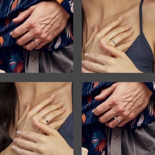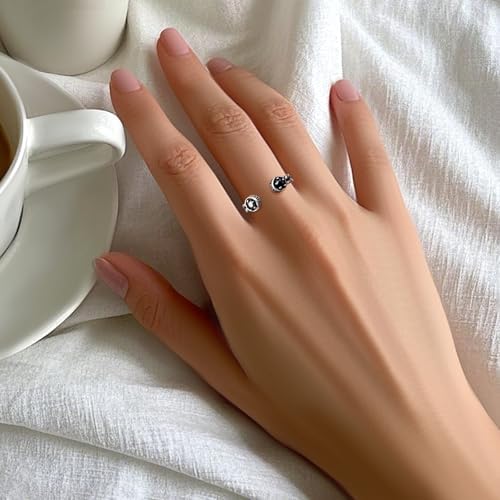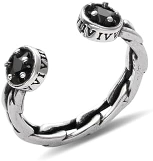 925 Sterling Silver Stackable Black Onyx Rings Adjustable Vintage Statement Gothic Style Cool Rings with Initial