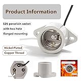 Surface Mount E26 Light Socket, Porcelain Medium Base Lamp Holder,Cleat Light Socket,with 6-Inch Leads, 2-Hole Flange Mount,Glazed (2-Pack)