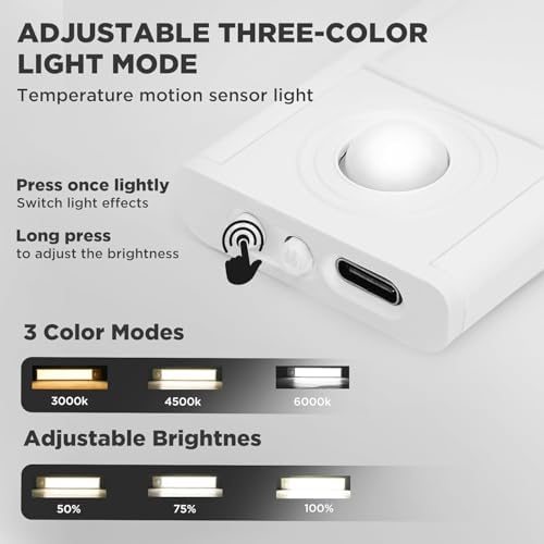 - Adjustable 3 Color Temperature & Dimmable: The electric under cabinet light bar can switch between 3 color temperatures with one button, 3000K (warm white light), 4500K (natural light) and 6500K (cold white light). Long press the settings key to change the brightness.
