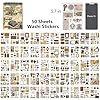 Vintage Washi Sticker Book for Journaling, 50 Sheets 604Pcs Pre-Cut Dark Academia Scrapbook Stickers, Ephemera for Junk Journal Supplies, Scrapbooking Crafts Arts Bujo for Adults