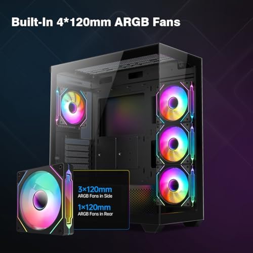 - 【Pre-Installed Fans】 Comes with 4 pre-installed high-performance 120mm ARGB PWM Prism fans—three in the front and one at the rear—delivering powerful airflow and vibrant lighting out of the box.