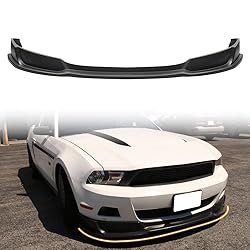 Perfect Fitment: Package Includes:1x Front Bumper Lip; Instruction is NOT included; Custom design and precise Fits 2010-2012 Ford Mustang V6 Superior Craftsmanship: This front bumper lip spoiler made of 100% brand new Polyurethane(PU), which is tough construction, light weight and impact resistant, durable enough for long-lasting performance during any weather situation Stylish Look: Simple yet elegant Unpainted Black add on chin lip spoiler is a perfect exterior styling upgrade, provide refresh new sporty and aggressive look to your car Good Performance: The new front spoiler protector guard works fine to provide more downforce and aerodynamics of the car to enhances overall performance in handling for safety driving. At the same time reduce the fuel consumption of the car while driving Full Protection: Front body splitter bumper lip used to protect car from minor abrasions caused by narrow roads or bouncing rocks, protect the original front bumper
