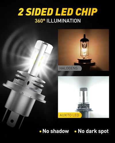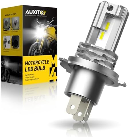 - 400% Brighter for Enhanced Visibility - AUXITO H4 Light Bulb Motorcycle delivers 400% brightness, 6000K cool white, providing clearer wider and further visibility at nights in advance.