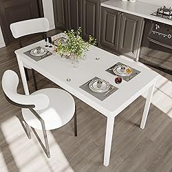 Modern Dining Table Set for 2 People: 3-piece dining table set consists of 1 table and 2 chairs, table size: 46''L×28.15''W×30''H, chair size: 15''L×15.5'' W×31.5''H. The style of the table and chair set is simple and elegant, suitable for any decoration style. Wide Range of Uses: The dining table set can be used not only at home, but also in other commercial places, such as restaurants, etc. The spacious dining space brings you a happy meal. Humanized Design: The 2 Boucle chairs have soft seat cushions, and the ergonomically designed chair backs increase comfort. The curved design of the table corners reduces pain caused by bumps. Space-Saving Design: When you finish eating, the dining chairs of the dining table set can be moved under the dining table, which saves your space to a great extent. Excellent Service: The product package includes assembly tools. If you encounter any problems during the installation process, please contact us in time. Your satisfaction is our greatest pursuit.