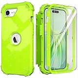 IDweel for iPhone 16e Case with Screen Protector,Case for iPhone SE 4th Gen,Hybrid 3 in 1 Shock Absorption Slim Fit Heavy Duty Hard PC Cover Soft Silicone Bumper Full Body Case,Glitter Grass Green