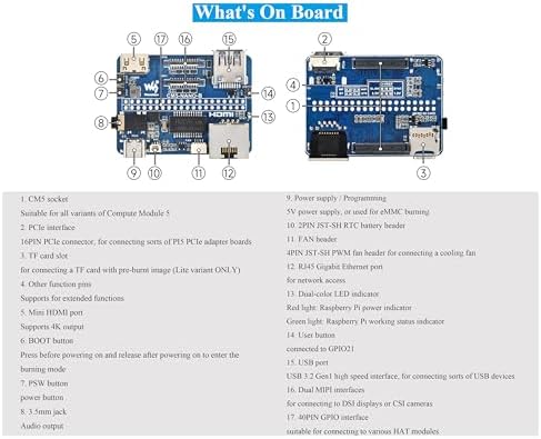 Mini Nano Base Board for Compute Module 5 Lite/eMMC, CM5 Compact Size and Fully Functional, with Multiple Peripheral Interfaces-Gigabit Ethernet RJ45, 40PIN GPIO USB 3.2 Gen1 Type-A, etc