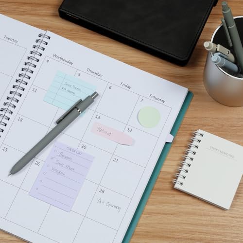 - 4 SHAPES, COMPACT SIZE: Notebook measures 3" x 3"; sticky memos come in 4 handy shapes: arrow, circle, lined memo and lined checklist; assorted pastel colors: pink, purple, blue, teal and green