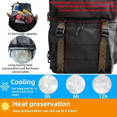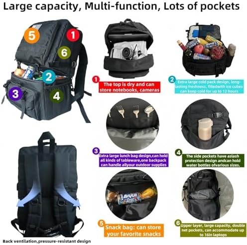 - INSULATION AND LEAKPROOF: lunch box backpack for men thickened insulation layer can keep the temperature of food and drinks. It can keep cold for 12 hours and keep warm for about 6 hours when it is all ice. It is 100% leakproof and easy to clean