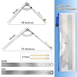 1.Woodworking compass tool:with a 12inch locking compass, two pencils and a 12inch ruler to meet all your drawing needs. 2.Professional quality: designed for accuracy and durability, this compass set is perfect for woodworking and other precision crafts. 3.Durable:This compass drawing tool is made to last, with high-quality materials and a sturdy design. The divider tool with pencil is a handy feature, allowing you to make precise marks without having to switch tools. 4.Easy to use:The carpenter compass is easy to use and adjust, making it perfect for both beginners and professionals. The geometry compass is versatile and precise, allowing you to create detailed designs and accurate measurements with ease. 5.Whether you’re sketching geometric diagrams, creating intricate art, or marking precise measurements on wood, this compass drawing tool unmatched accuracy and ease of use.