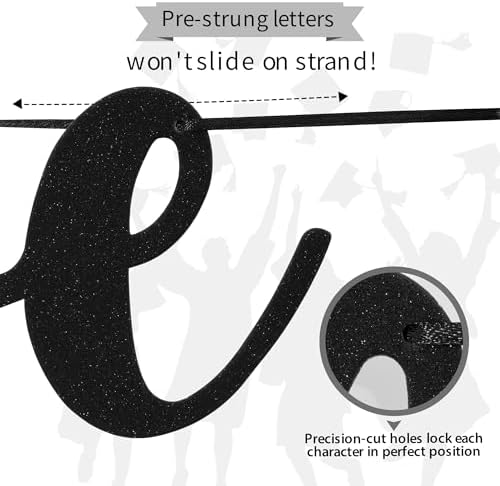 Class of 2025 Graduation Banners Garland Party Decorations - Black Glitter We are So Proud of You Graduation Banners Pre-Strung | Multi-Surface Celebration Decor for School, Home Porch Car Decoration