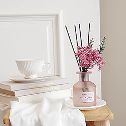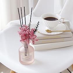 FRESH SCENT:An elegant arrangement featuring a delicate blend of freshly picked grapefruit and jasmine roses LONG-LASTING ROOM SCENT DIFFUSER: Enjoy up to 90 days of fragrant aroma. Once the reeds absorb the fragrance and release it in the air, it will subtly diffuse the scent across the room for weeks COMPLETE SET: Includes frosted glass bottle, essential oil mixture, natural reed sticks, and dried flower decoration VERSATILE USE: Perfect for bedrooms, bathrooms, living rooms, offices, or any space where you want to add a subtle, pleasant aroma ELEGANT DESIGN: Beautiful pink frosted glass bottle with decorative dried flowers and reed sticks creates an elegant home decor accent piece INSTRUCTIONS: Remove the plastic cap and insert the reeds into the diffuser bottle. Flip the reeds upside down after an hour. The reeds will absorb the oil and then diffuse the scent into the air. The diffuser is expected to achieve the full result in 24hours. To refresh the diffuser fragrance, simply flip the reeds again. It is recommended to store the product in a well-ventilated area to facilitate optimal fragrance dispersion