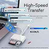 SD Card Reader for iPhone iPad Mac, USB C and Lightning Dual Connector Memory Card Reader, Digital Trail Camera Adapter to iPhone SD Card Viewer with SD/Micro SD/USB-A 3 Slot, Plug and Play